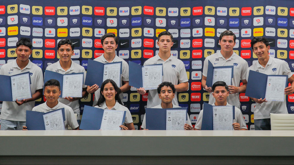 Diez futbolistas de las diferentes categorías de fuerzas básicas cumplieron con su bachillerato. El Club Universidad Nacional entregó reconocimientos a 10 futbolistas de diferentes categorías de Pumas que concluyeron sus estudios de Bachillerato a Distancia de la UNAM (B@UNAM).